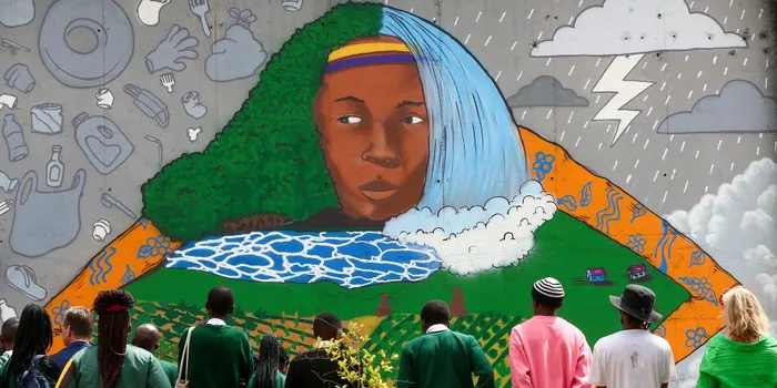 At Philippi Village, a bold and vibrant mural, created by Breeze Yoko and 20 youth, were unveiled to highlight the pressing need for climate action and water conservation in South Africa. Picture: Leon Lestrade / Independent Newspapers.