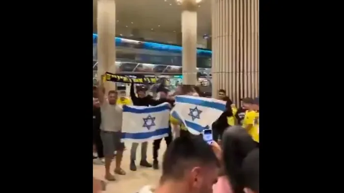 Maccabi Tel Aviv fans greet Jews at the airport, returning from Amsterdam. Picture: Hen Mazzig/X