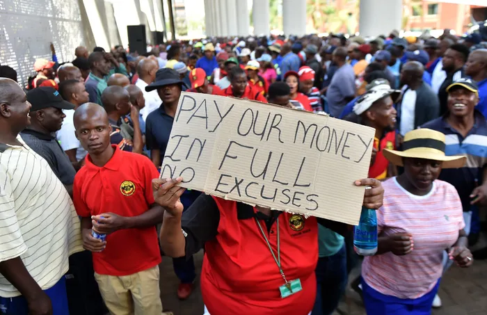 A file picture of municipal workers during a previous protest. Workers will today gather outside Tshwane House to receive feedback from the SA Municipal Workers Union. Picture: Oupa Mokoena/African News Agency (ANA)