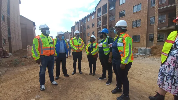 The DA leadership in Tshwane during an on-site inspection of the Marabastad Townlands Social Housing project. Picture: Goitsemang Tlhabye