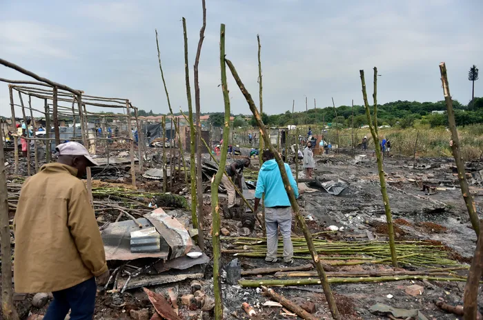 Cemetery View Informal Settlement residents rebuild their shacks after they were destroyed by fire. Picture: Thobile Mathonsi/African News Agency (ANA)