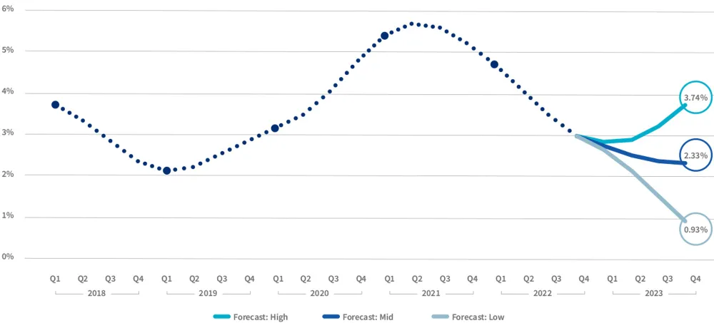 “Under such a scenario we forecast HPI to bounce back in the second quarter and end 2023 at 3.7% with strong upward momentum going into 2024,” De Kock says.