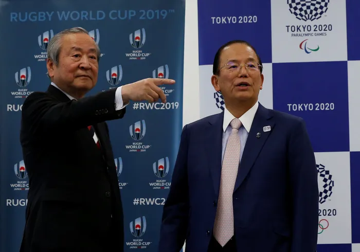 Toshiro Muto (right), CEO of Tokyo 2020 Organizing Committee of Olympic and Paralympic games, and Akira Shimazu, CEO of the Rugby World Cup 2019 Organizing Committee, attend the signing ceremony for their collaboration agreement in Tokyo during April. Photo: REUTERS/Issei Kato Toshiro Muto (right), CEO of Tokyo 2020 Organizing Committee of Olympic and Paralympic games, and Akira Shimazu, CEO of the Rugby World Cup 2019 Organizing Committee, attend the signing ceremony for their collaboration agreement in Tokyo during April. Photo: REUTERS/Issei Kato