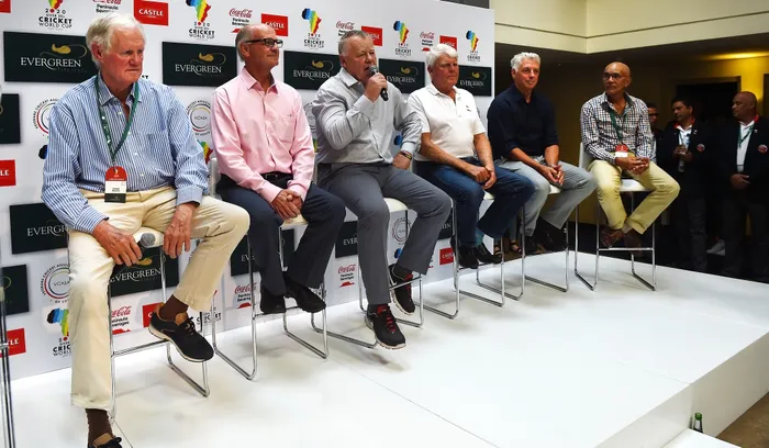 Proteas Veteran Barry Richards telling the audience and other over 50 players his stories during his time as a cricket player.This was during the gathering of the 12 countries that will be taking part in the Over 50s World Cup.Next to him is Graeme Pollock Peter Kirsten,Mike Procter,barry Richards and Omar Henry Barry Richards (right) and Mike Procter (left), acknowledged as two of South Africa’s greatest cricketers, played against each other as schoolboys and went on to play together for the Natal province and South Africa. Picture: Phando Jikelo/African News Agency(ANA)