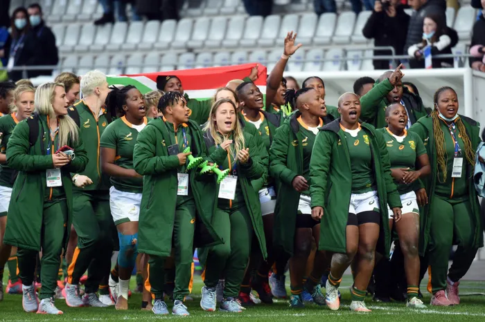 FILE - South Africa national rugby union team players react after the women's international rugby test match against France. Photo: Jean-Francois Monier