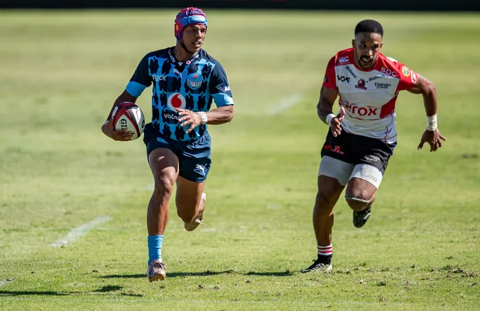 Kurt-Lee Arendse of the Bulls gets away from Courtnall Skosan of the Lions during their Currie Cup semi-final game at Loftus Versfeld in Pretoria on Saturday. Photo: Christiaan Kotze/BackpagePix