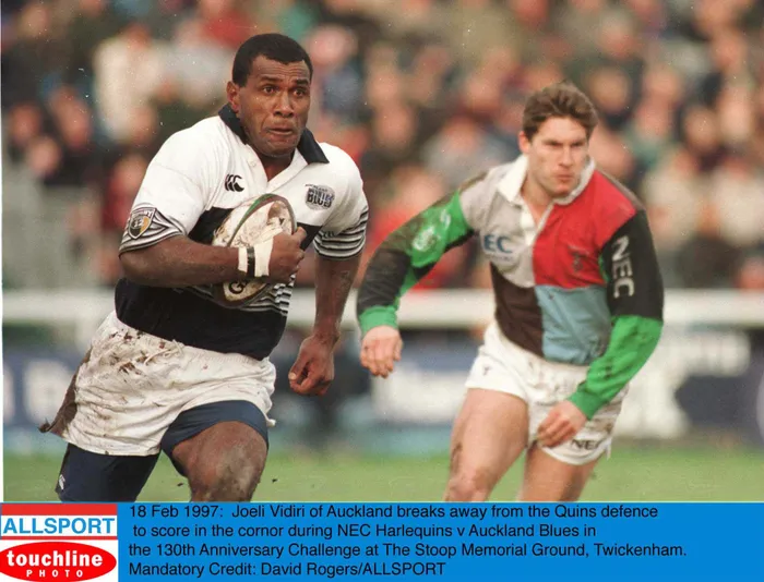 Joeli Vidiri of Auckland breaks away from the Quins defence to score in the cornor during the Harlequins’ 130th Anniversary Challenge at The Stoop Memorial Ground FILE - Joeli Vidiri of Auckland breaks away from the Quins defence to score in the cornor during the Harlequins’ 130th Anniversary Challenge at The Stoop Memorial Ground. Photo: David Rogers/ALLSPORT