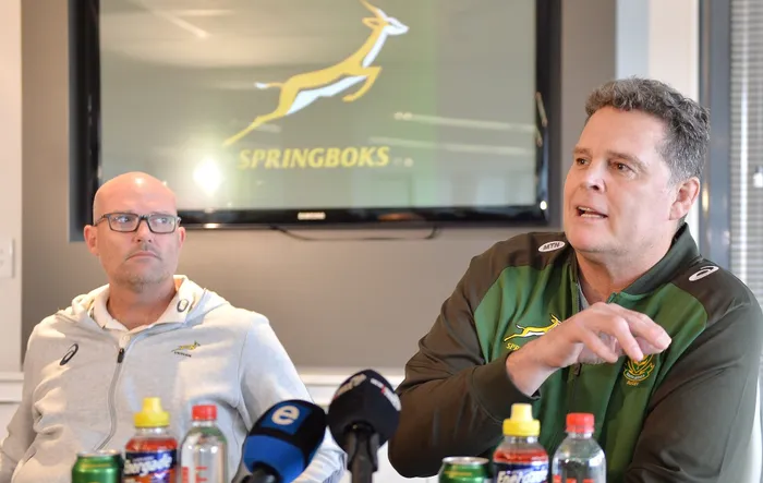 Jacques Nienaber (left) anr Rassie Erasmus during a Springbok press conference. If there is one thing we have learned in the era of Rassie Erasmus and Jacques Nienaber, it is that there will always be a plan for a plan. Picture: Phando Jikelo/African News Agency (ANA)
