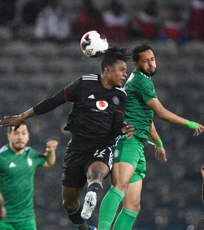 Ahmed El Tribi of Al Ahli Tripoli challenges Kwame Peprah of Orlando Pirates during their CAF Confederation Cup semi-final second leg clash at Orlando Stadium in Soweto, Johannesburg on Saturday Ahmed El Tribi of Al Ahli Tripoli challenges Kwame Peprah of Orlando Pirates during their CAF Confederation Cup semi-final second leg clash at Orlando Stadium in Soweto, Johannesburg on Saturday. Photo: Sydney Mahlangu/BackpagePix