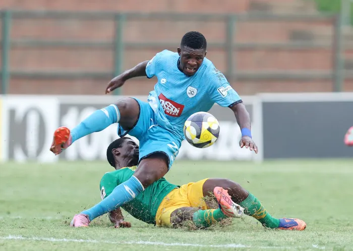 Durban City are juggling a Nedbank Cup final and a top-five chase, but coach Pitso Dladla admits the "mentality and desire" must improve after a shaky KZN derby. Here, Jean Lwamba of Durban City is tackled by Ntando Mabaso of Golden Arrows during their encounter. Photo: BackpagePix