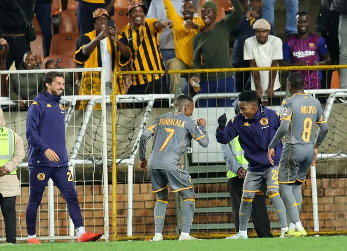 Mduduzi Shabalala of Kaizer Chiefs celebrates his goal with teammates during the Betway Premiership match against Magesi FC at the New Peter Mokaba Stadium in Polokwane on Wednesday night.