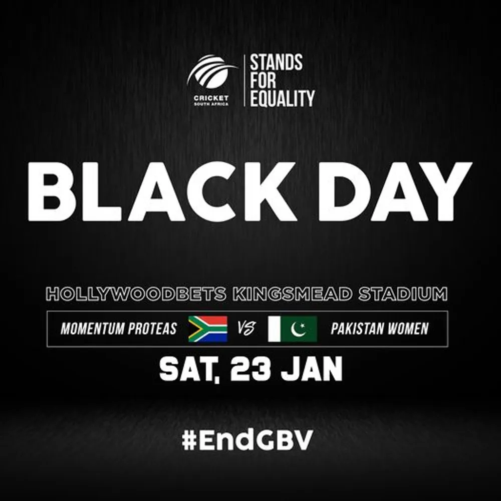 The cause-driven Black Day ODI game is set for Saturday, 23 January 2021, at the Hollywoodbets Kingsmead Cricket Stadium and will see the Momentum Proteas - decked out in their black kit - take on Pakistan Women at one of South Africa’s premier women’s sports events.