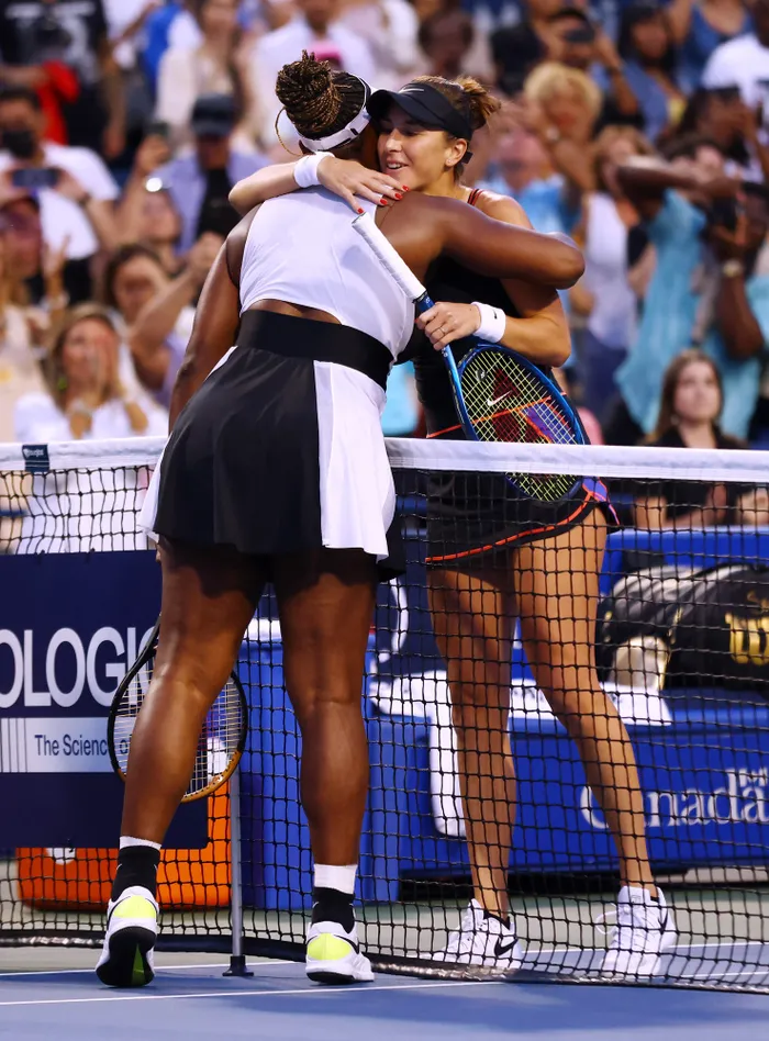 Serena Williams of the United States hugs Belinda Bencic of Switzerland following their match at the National Bank Open, part of the Hologic WTA Tour, at Sobeys Stadium in Toronto, Ontario, Canada on Wednesday Serena Williams of the United States hugs Belinda Bencic of Switzerland following their match at the National Bank Open, part of the Hologic WTA Tour, at Sobeys Stadium in Toronto, Ontario, Canada on Wednesday. Photo: Vaughn Ridley/Getty Images/AFP