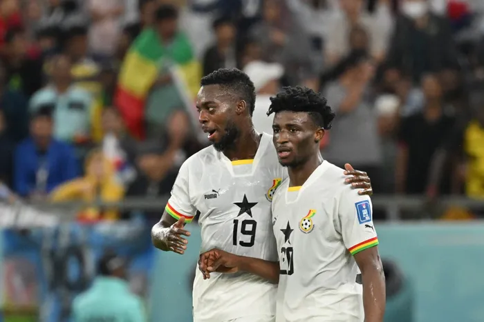Ghana's Mohammed Kudus celebrates with Inaki Williams after scoring his team's third goal during their Qatar 2022 World Cup Group H football match againt South Korea at the Education City Stadium in Al-Rayyan on Monday Ghana's Mohammed Kudus celebrates with Inaki Williams after scoring his team's third goal during their Qatar 2022 World Cup Group H football match againt South Korea at the Education City Stadium in Al-Rayyan on Monday. Photo: Jung Yeon-je/AFP