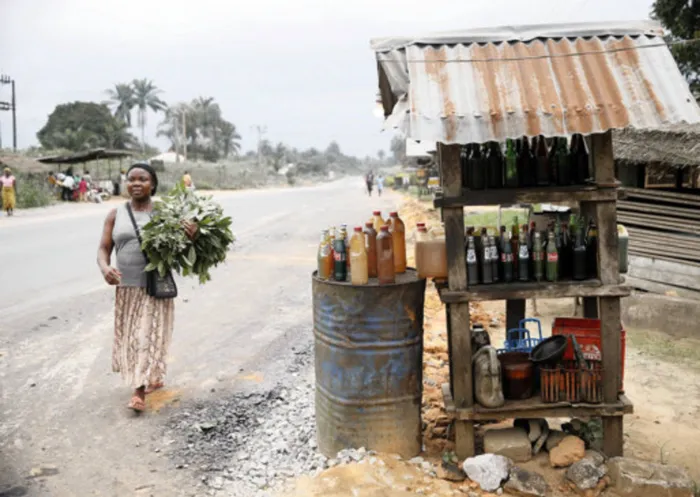 Bottles of petrol are offered for sale in Ikot-Ada-Udo, in Nigeria's Akwa Ibom state. Filling stations were low on fuel this week because owners had not been paid their subsidies and refused to import supplies. Photo: Akintunde Akinleye Bottles of petrol are offered for sale in Ikot-Ada-Udo, in Nigeria's Akwa Ibom state. Filling stations were low on fuel this week because owners had not been paid their subsidies and refused to import supplies. Photo: Akintunde Akinleye