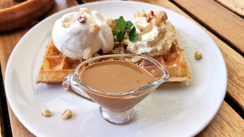 We also tried the macadamia nut waffle with cream and ice cream. Eric suggested we try their homemade caramel sauce, which added another layer of flavour to the dish. The meal itself wasn't overly sweet, and I'd have ordered a doggie bag if I didn't have the long afternoon drive home.
