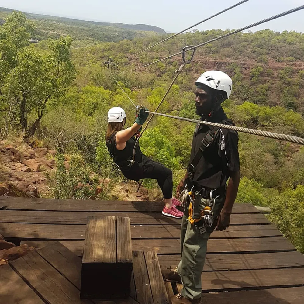 Soar through the Waterberg Mountains on an exhilarating ziplining adventure. This unforgettable experience provides panoramic views and an adrenaline rush for the entire family, suitable for children aged 5 and up, where you can slide through the stunning mountains.