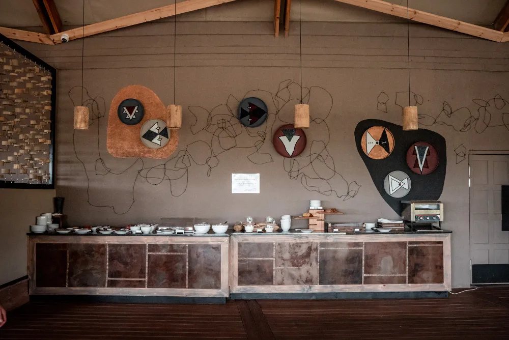 During the drive to the lodge, you may be fortunate enough to see animals meander in the blistering heat. The real treat is when you reach the lodge, which offers many spots to enjoy nature and take in its exquisite design.