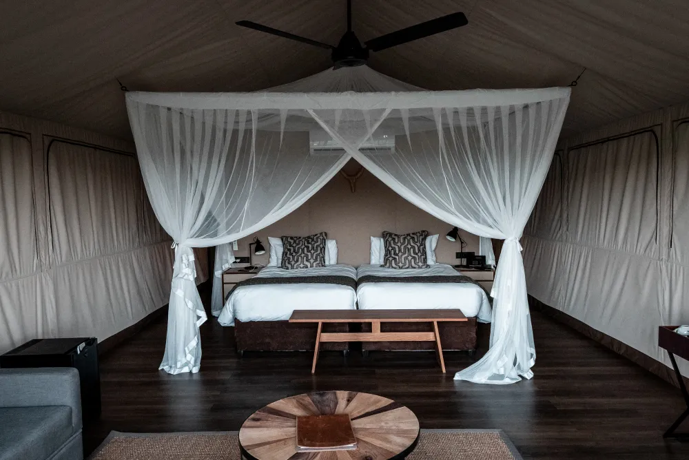 Mdluli boasts 50 luxury tents. According to its website, it showcases a "carefully curated fusion of raw timbers and canvas textures with the authentic charm of Siswati tradition."