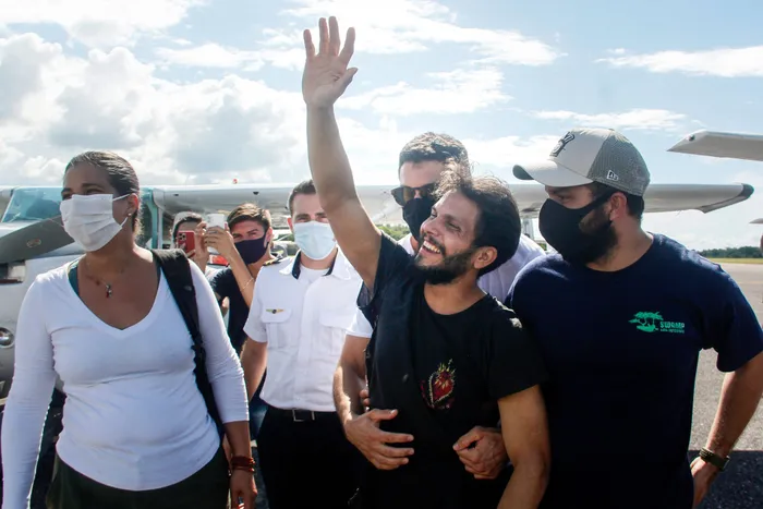 Brazilian pilot Antonio Sena after being rescued in Santarem, Para State, north of Brazil. Picture: Marcelo SEABRA / Brazil's Para State Government / AFP).