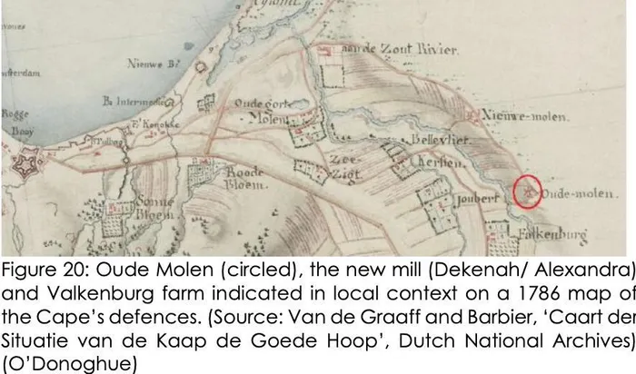 A 1786 map marking Oude Molen