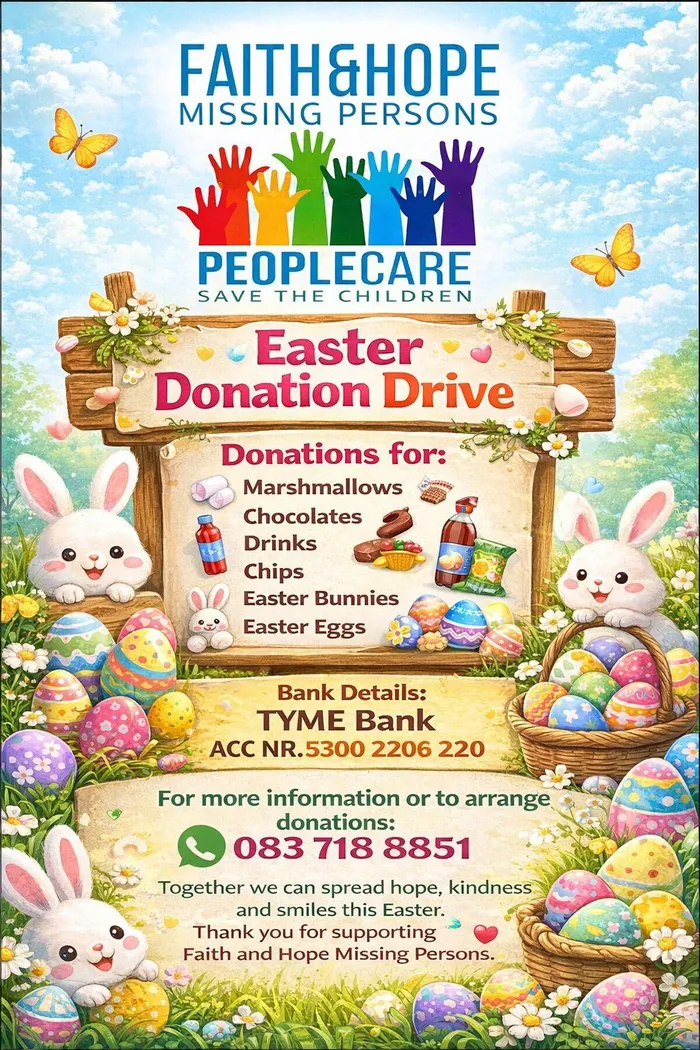 Veranique “Benji” Williams, founder of the Faith and Hope Missing Persons Unit, is preparing to host an Easter outreach initiative aimed at bringing joy and support to underprivileged children across Cape Town this weekend, with a target of reaching 500 children.