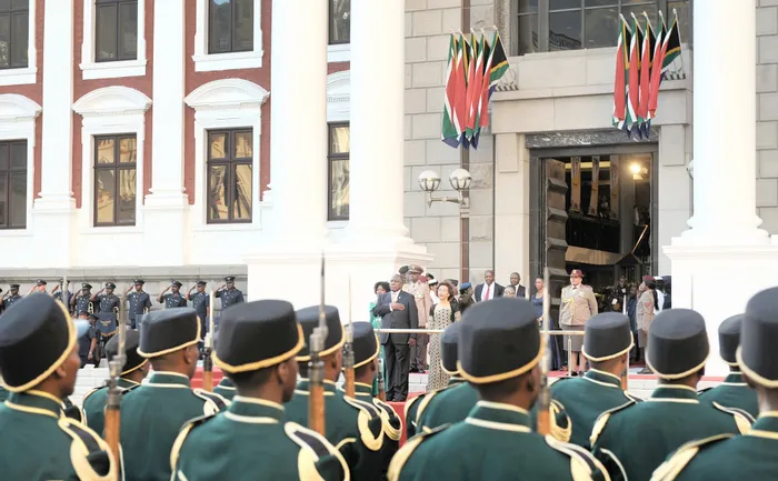 President Cyril Ramaphosa listens as a military band plays the national anthem ahead of his State of the Nation address this week. Picture: Armand Hough/African News Agency (ANA) President Cyril Ramaphosa listens as a military band plays the national anthem ahead of his State of the Nation address this week. Picture: Armand Hough/African News Agency (ANA)