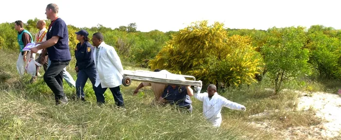 Mortuary staff remove the body of 3-year-old Jawayda Joseph, who was found murdered in the notorious ’Bush of Evil' in Delt. Picture: Ian Landsberg/African News Agency