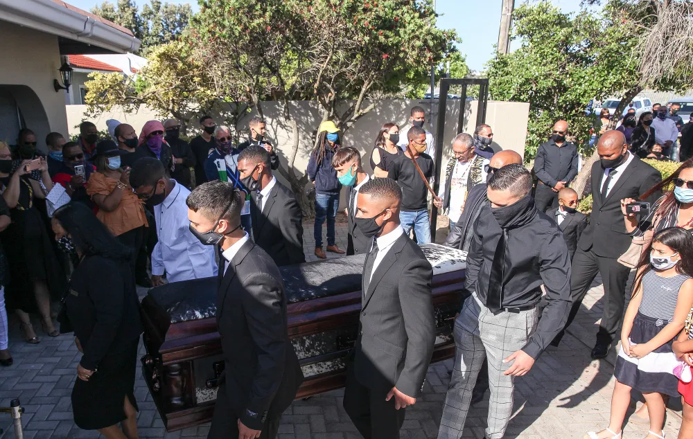 Former 28s gang boss Ernie ’Lastig’ Solomon was buried in Hawston on Saturday. Picture: Leon Lestrade. African News Agency/ANA.