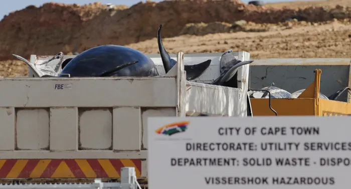 Deceased animals that are found in public spaces or roads are taken to the Vissershok landfill site. Cape Town. Trucks were used to transport the whale cauceses to Vissershok Landfill site. Picture Henk Kruger/African News Agency (ANA)