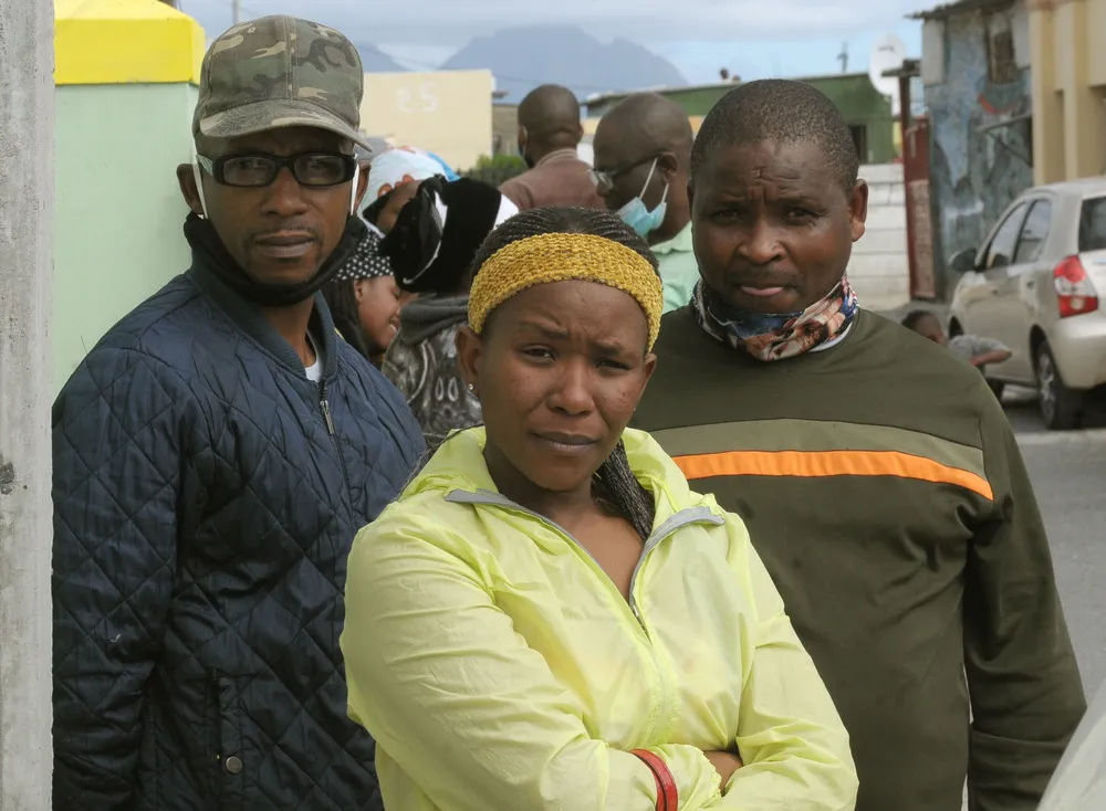 Police and family gather outside the home of the deceased. Picture: Tracey Adams/ African News Agency (ANA)