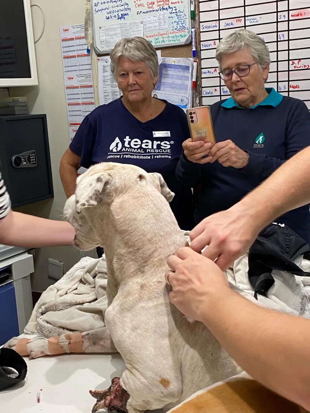 “Two caring residents and Tears supporters called me about seeing the dog, who had a dark ring around her neck, as though she had been chained or tied up, and was emaciated.
