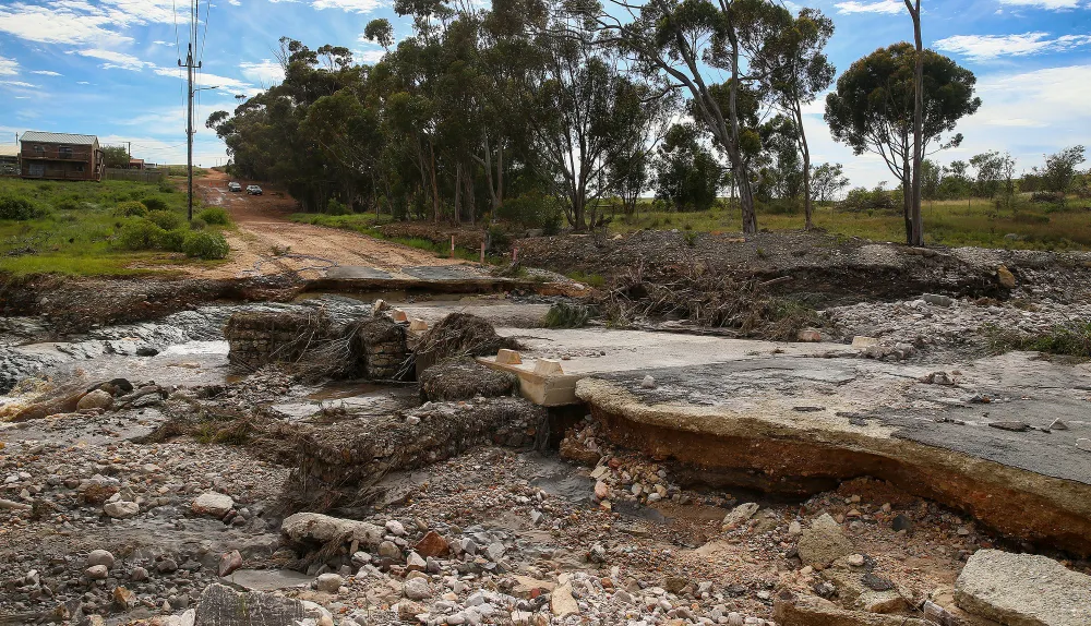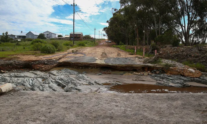 Trade road in Napier leading to farms and a bridge was washed away. Farmers have lost cattle and grounds of small holdings. Picture Leon Lestrade. African News Agency/ANA. file image