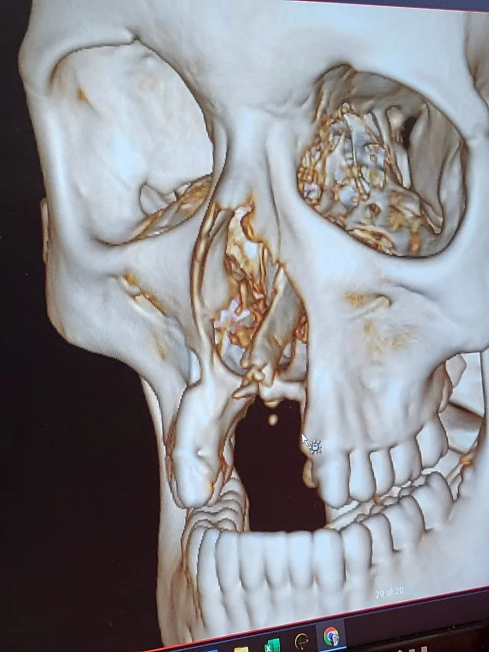 “With the first of the CT scans, he found a piece of non-vital triangular bone that was broken off in the middle of her upper jaw. He explained that it was the dead bone that has been causing the ongoing infection.