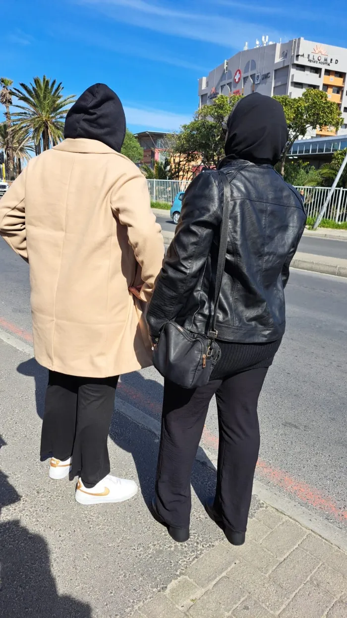 The 14-year-old victim stands with her mother outside of the Mitchell’s Plain Magistrates’ court. The teen claims her father, who was axed by the City last month, allegedly raped her when she was six-years-old. Picture: GENEVIEVE SERRA