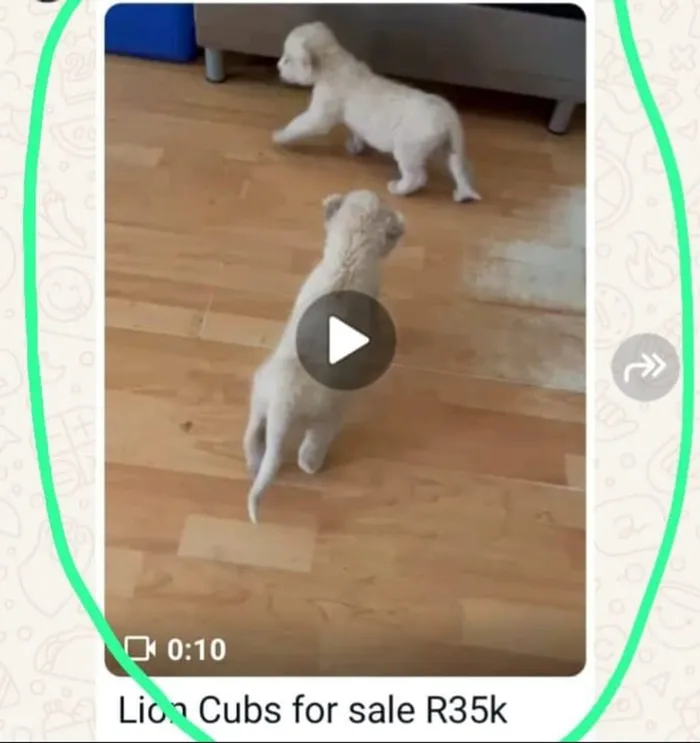 “There appears to be three cubs. The seller advertised the lion cubs for sale on a private WhatsApp Group. The advert was read with shock, horror and disbelief and shared with us.”