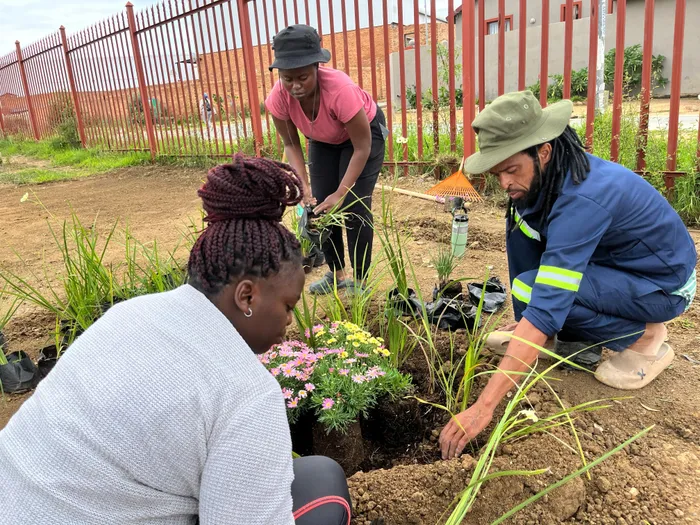 Learners take part in tree planting and recycling activities during a school-based environmental awareness drive in Johannesburg ahead of Earth Day