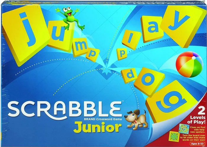 Scrabble Junior lives up to its claim of being an "ideal introduction for children to the world's favourite game". Choose one of two levels to suit the age group of the players: young children can start with "Words and Pictures", a game specially created to help with word formation and recognition. "Rainbow Scrabble" is more challenging and is intended for children aged seven and older, having been specially formulated to introduce players to the adult version of Scrabble, though with a far simpler scoring system.Kid-sized words and colourful images make it fun to match letter tiles to words on the grid. For 2 to 4 players; Ages 6-10 years.